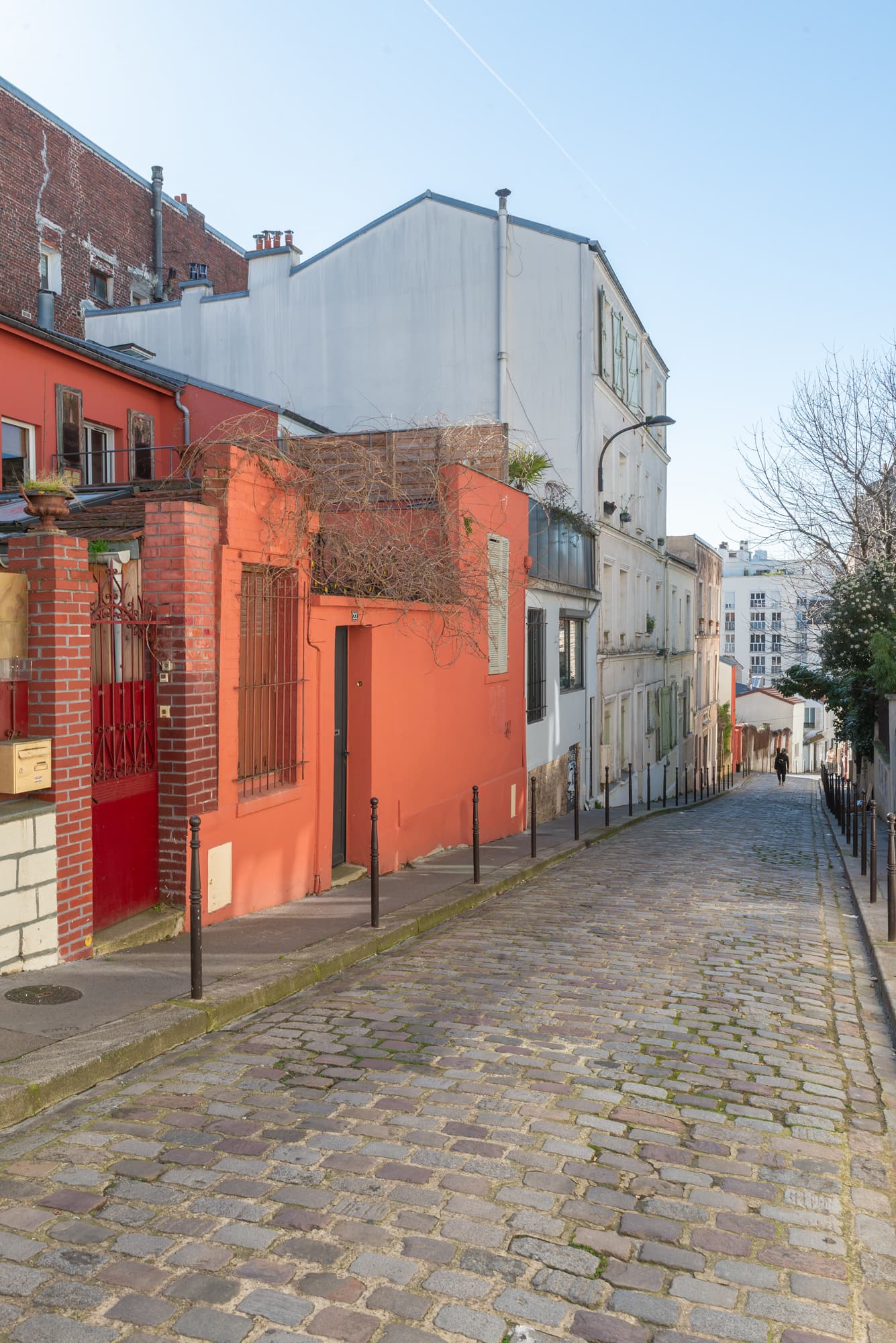 Situé rue Laurence Savart, Paris 20e, au premier et dernier étage d’une petite copropriété organisée autour d’une courette, cet appartement à l’esprit maison développe 58 mètres carrés au sol (55 mètres carrés Carrez), avec une hauteur sous plafond de 2.60 mètres.