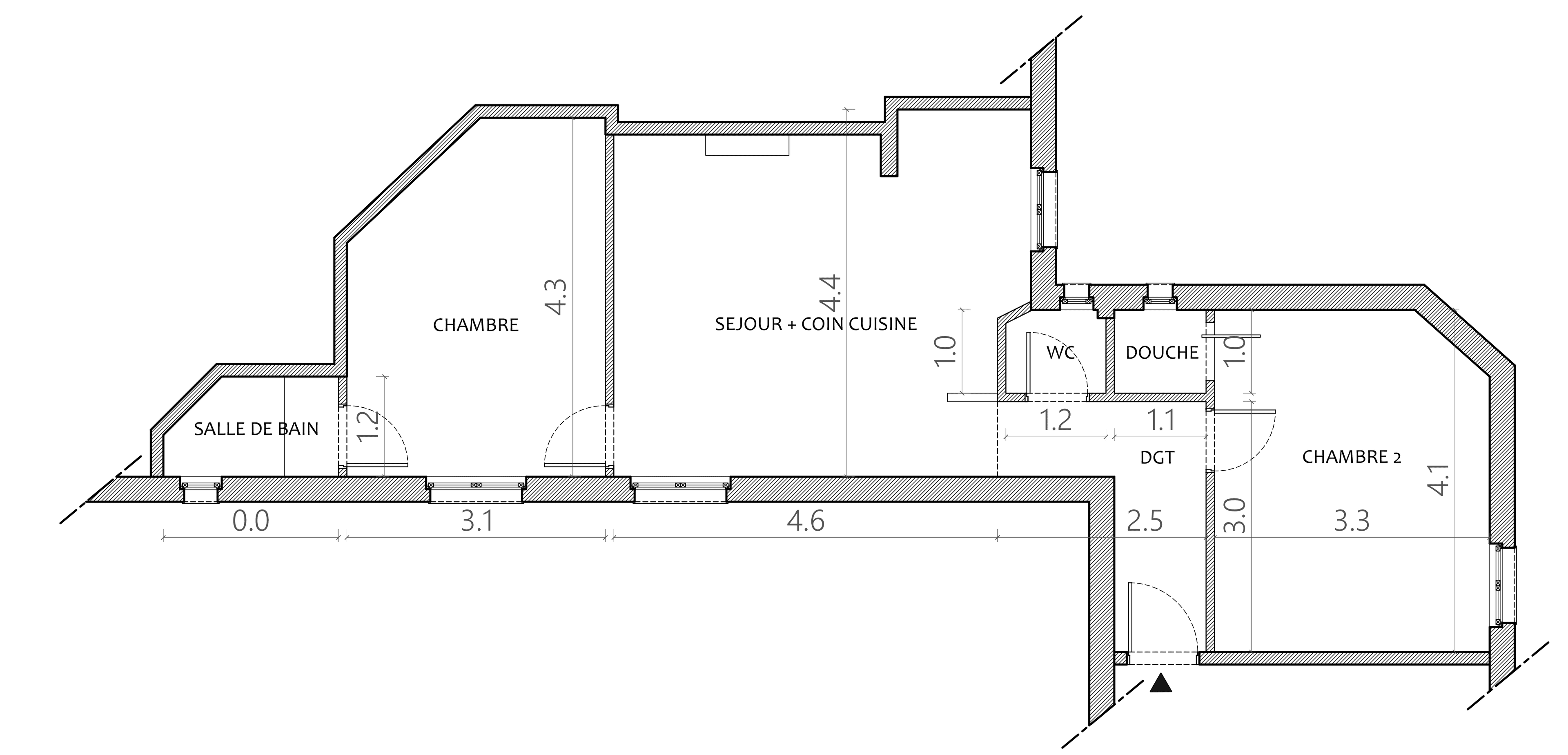 | Chambre | 13,01 m2 | Nord-Est | sur cour |